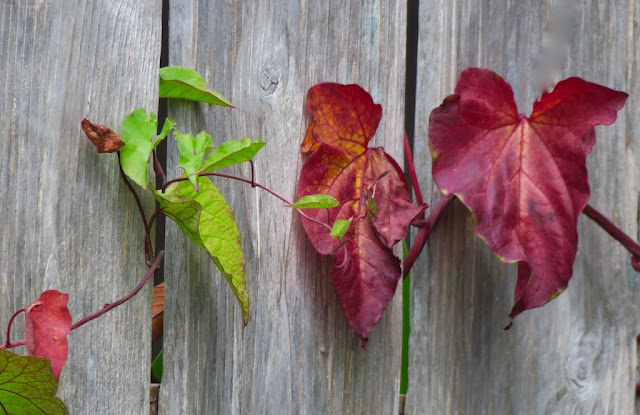 I did enjoy the contrast of the colors on the leaves against the weathered board.
